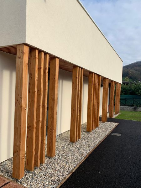Belle conception de l’architecte pour un bâtiment fonctionnel et esthétique qui participe aux ambitions de décarbonation. La structure bois est idéale pour cette typologie de bâtiment, et pas que !
